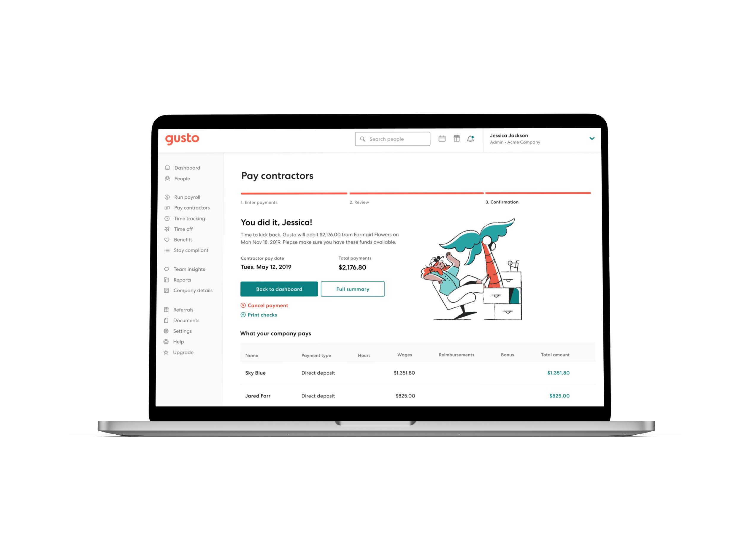 The first thing we did was allow contractors to track their hours on Gusto. This means employers no longer have to keep track of contractors’ hours. Second, we released 2-day contractor payments, which allowed contractors to get paid faster and make Gusto a competitive product.