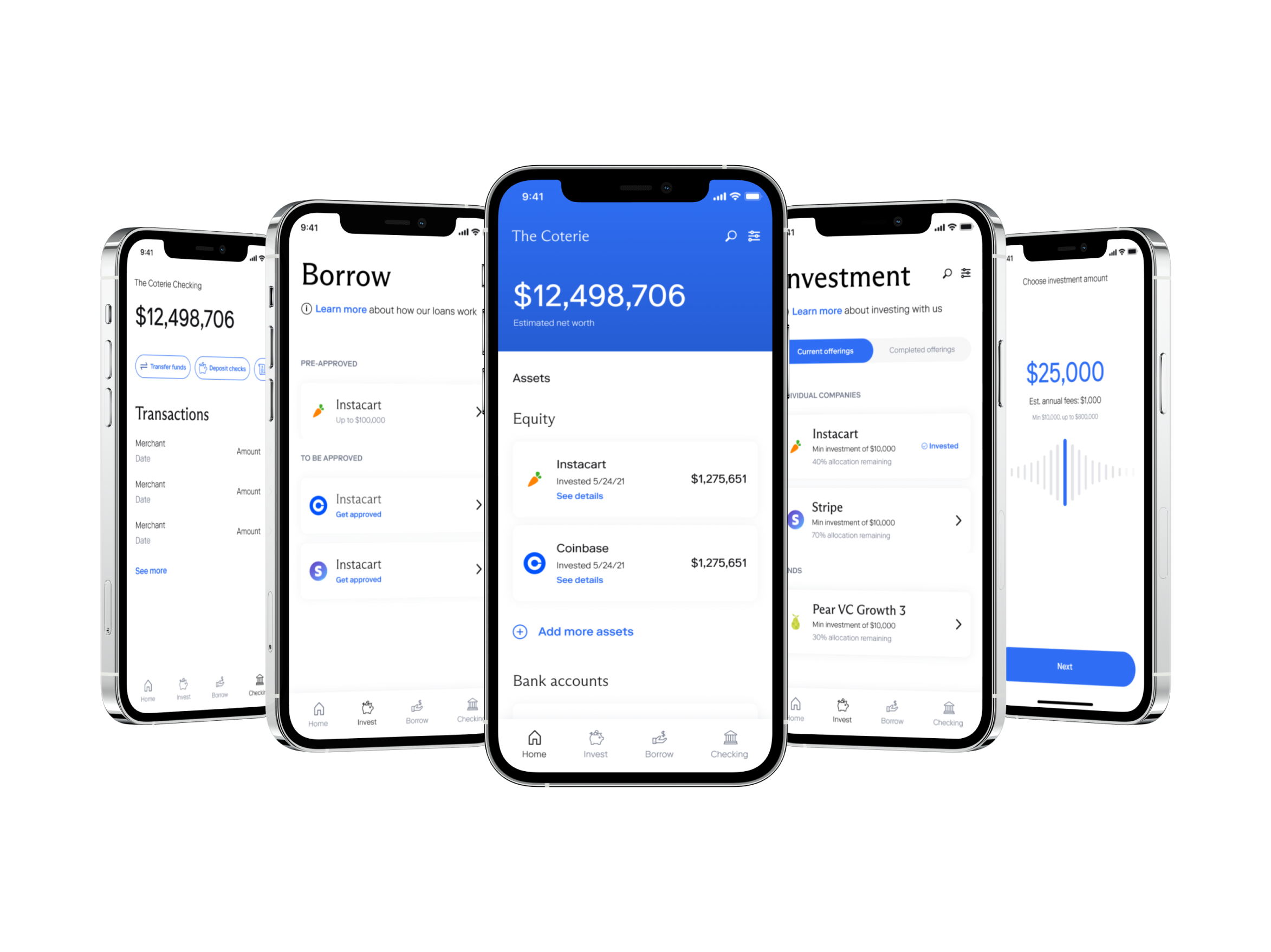 The Coterie is a 1-stop-shop to manage investments in funds and private equity, borrow against your private equity, and borrow to invest. It aspires to provide holistic financial services for Accredited Investors and Qualified Purchasers.